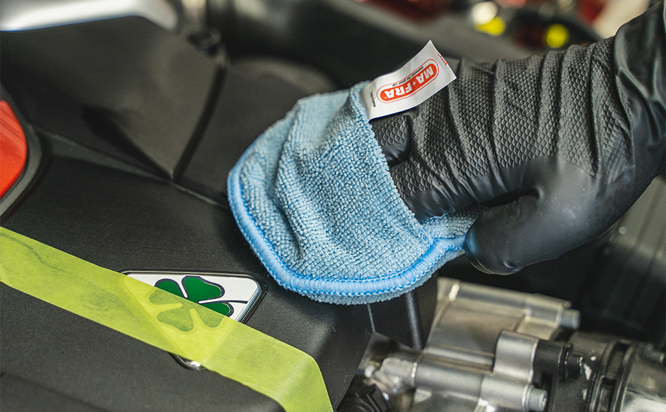 Distribute the product evenly over the surface; - Finish with a clean and dry microfiber cloth;