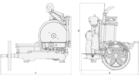 - Classic Berkel flywheel with squared profile and internal balancing to lock rotation in any position