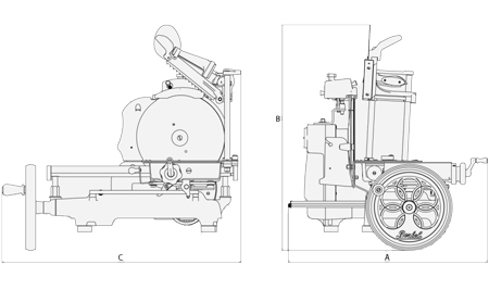 Berkel slicer Volano B3 black. Manual slicer with an elegant, classic design.